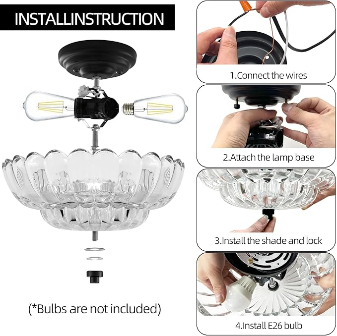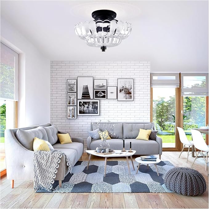 - 【Semi-recessed design】Vintage and modern cottage style with ceiling light. This semi flush mount ceiling light comes with a beautiful quality glass shade and a matte black metal base. Beautiful, safe and unique, ceiling lights can create a romantic atmosphere in your home and are the perfect choice to decorate your home.