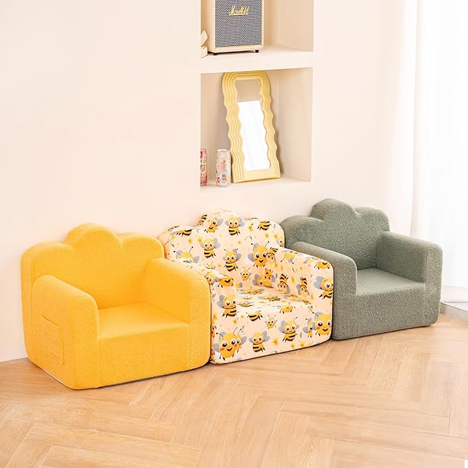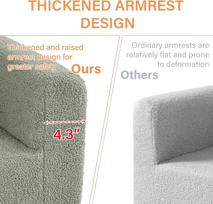 - 【Cloud-Like Back Support】This fluffy toddler chair is especially designed for little ones. Sitting in this fluffy toddler chair like snuggling a shining cloud. Toddler armchair cover is made of safe & skin-friendly durable cotton, we've utilized upgraded high-density sponge to enhance the durability and reliability of the kids chair, ensuring optimal protection for your child. So they will play games, eat snacks, watch TV, reading or just lie down and rest on the sofa.