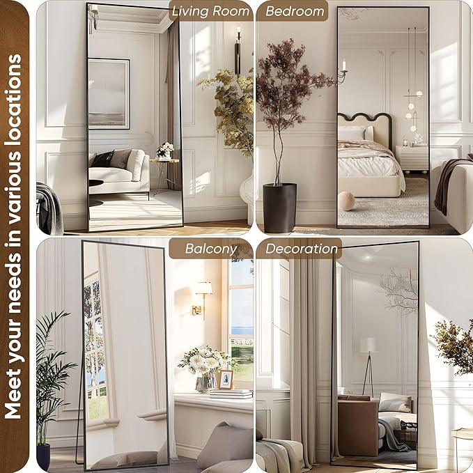 - Frame Design: The floor mirror is made of high quality aluminum alloy frame. The mirror frame is thin and lightweight and can be moved easily. Make your room look noble and elegant