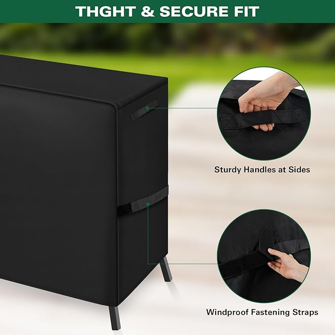 - 【Adjustable Straps & Carry Handles】Closure straps on both sides tighten the grill for a snug fit and keep the gas griddle grill cover in place even during the strong wind season. The heavy duty handles make the outdoor grill cover easy to put on and off, also can hang it up when not in use, very convenient for storage.
