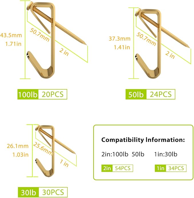 - [Quite Easy to Use] The picture hanging hooks are easy to hammer into drywall without bending, suitable for novices to securely hang different sizes and types of wall items, and just as easy to remove when no longer needed, ensuring minimal disruption to your plaster walls.
