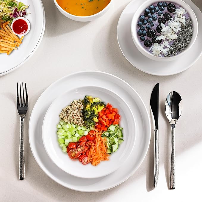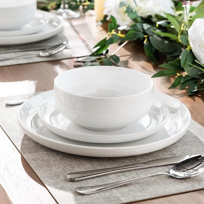 AmorArc Ceramic Dinnerware Sets of 4,Porcelain Plates and Bowls Sets, Scratch Resistant Dishes Set, Dishwasher & Microwave & Oven Safe Dishes Set,White Dishware Service for 4-12 pcs