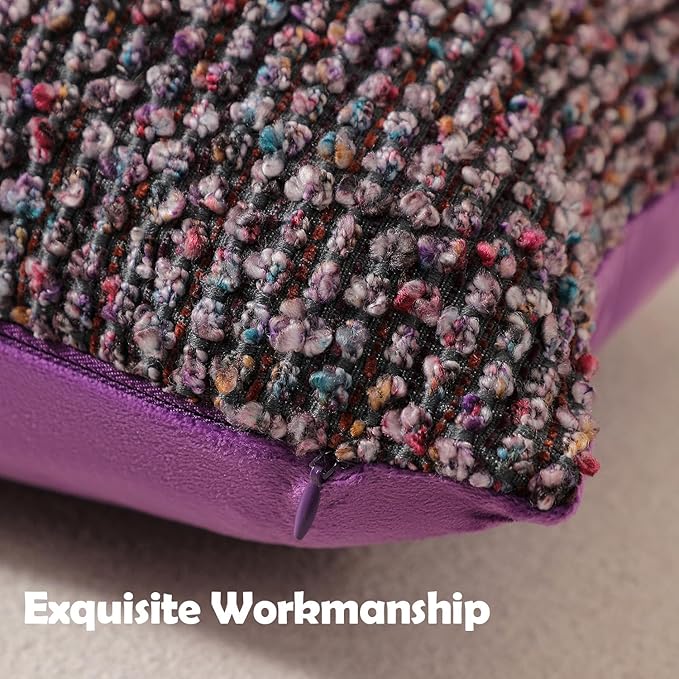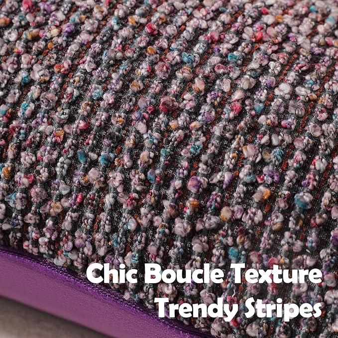 DEZENE Striped Throw Pillow Covers 18x18 Set of 2 Colorful Purple Textured Boucle Chic Morden Boho Accent Farmhouse Square Decorative Couch Pillow Covers for Home Decor Bed Sofa Living Room