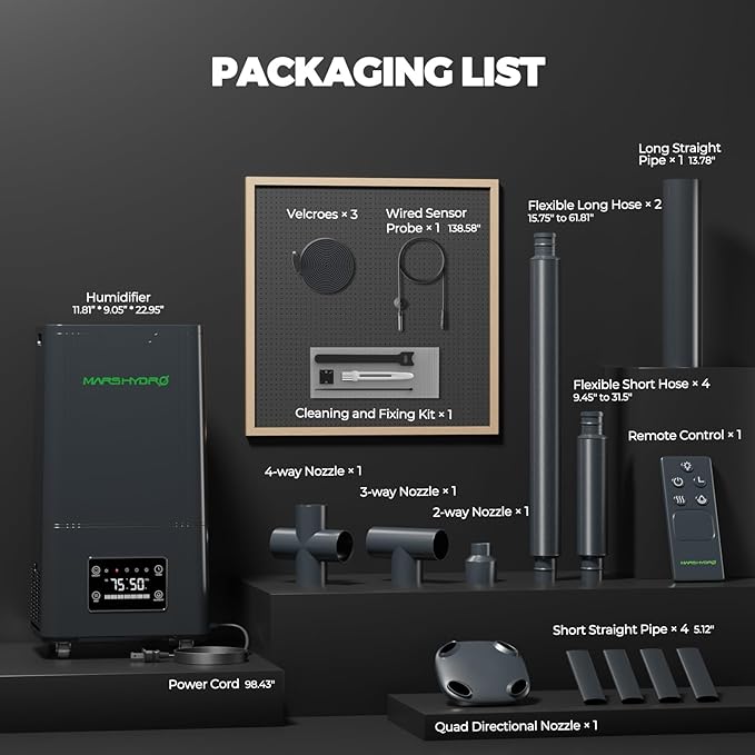 - Adjustable Humidity Levels:Customize and maintain the ideal humidity level for your plants. It offers 1-4 levels of fog volume and 35%-95% humidity adjustment.Flexible telescopic hoses ensure precise humidity distribution for specific areas or the entire grow space.