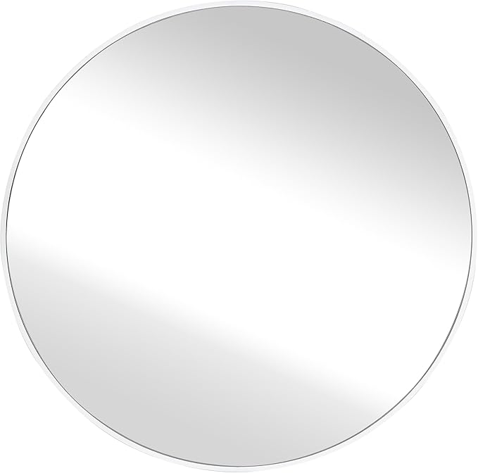 White Round Mirror 24 Inch,Circle Bathroom Vanity Mirror for Wall,Hanging Modern Tempered Glass Mirror for Entryway or Living Room