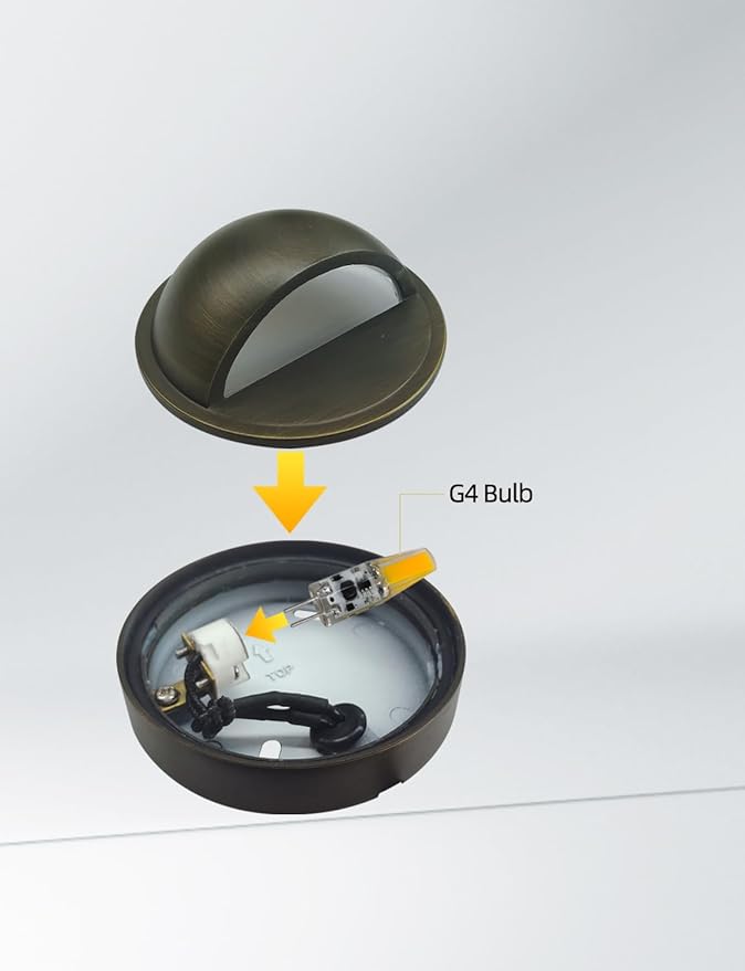 - Unique Design: The circular lamp holder's low height lets it hide in the grass or shrubs. The frosted lens eliminates glare letting you enjoy bright light. This brass deck light fixture with LED G4 bulb,only 2W deliver 180lm lighting effect to brighten your landscape.