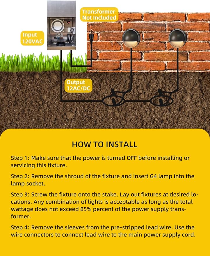 - Flexible Installation: The low voltage ground light with a cleated heavy-duty stake design makes it easy for outdoor ground-mounting. Equipped with removable ground stake, lamp body can be used alone.
