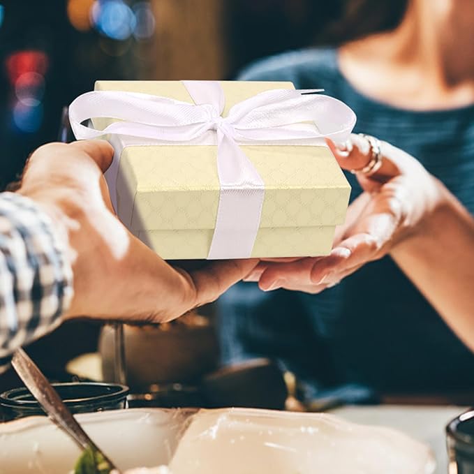- ♛【What You Get】: In this kit, you will receive 15pcs champagne color diamond patterned 2.95 x 2.95in cardboard jewelry gift boxes, 1pcs scissors and 1pcs polyester ribbon, for a total of 17pcs in an airplane box. Whether you are a jewelry retailer or someone who enjoys collecting jewelry, these boxes will meet your every need. Note: Jewelry not included!