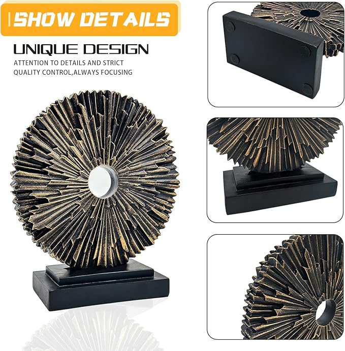 - Modern simplicity: This unique abstract circular sculpture is made with irregular lines and abstract design. Suitable for an office or living room, the gradual combination of black and copper makes the statue very striking. Suitable for a variety of home decor styles, to add an artistic atmosphere to your home and office.