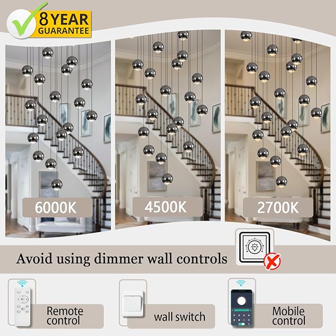 - (●'◡'●)【Crystal Ball Chandelier Warranty】: The warranty period is 8 years, If you encounter any quality issues or require replacement accessories, please feel free to contact us. We will be happy to provide free replacements or chandelier