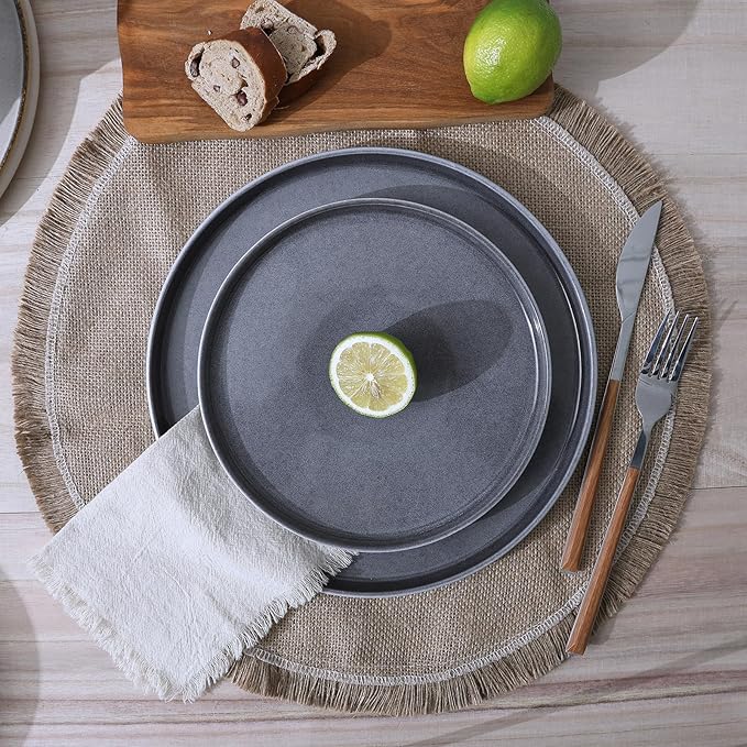 - Scratch-resistant & Reusable: Our organic clay is fired at a high temperature of 2340 ℉ for 13.5 hours to form a sturdy surface. So the stoneware dish set won't get scratched by the knife and fork