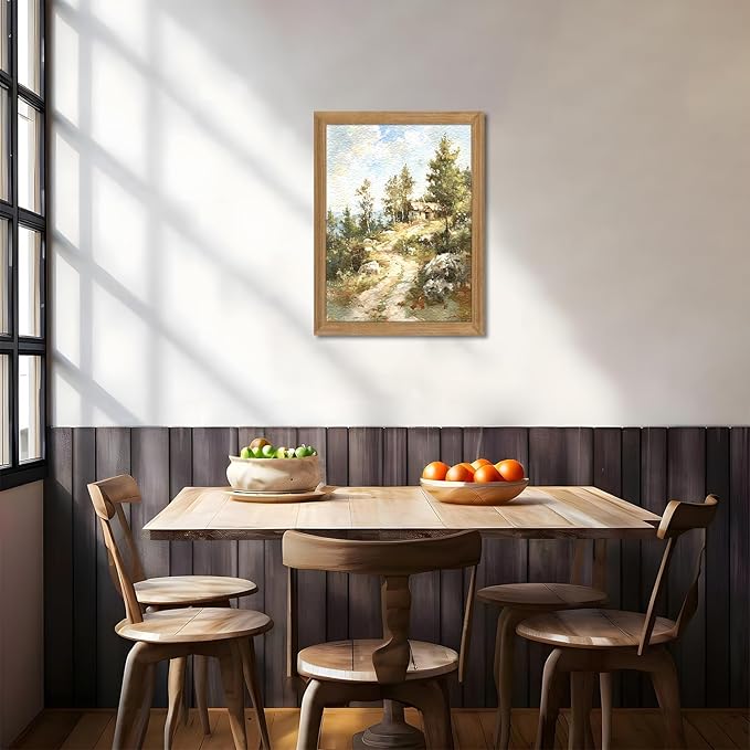 AKWISH Framed Vintage Wall Art - 3D Textures Vintage Wilderness Painting Farmhouse Decor - Hand Drawn Suburbs Wall Art for Living Room Bedroom Decor Bathroom 12x16in