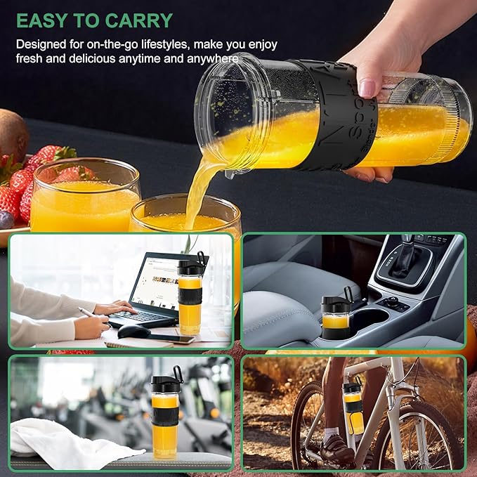 - Portable: 600 ml travel bottle can be used to hold orange juice, pomegranate juice, carrot juice,apple juice and other juices. the silicone sealing ring under the bottle cap can effectively prevent leakage. the ergonomically designed plastic bottle body and the handle is easy to reach and shatterproof, making it the best bottle for outdoor activities like cycling, camping, jogging, walking and more