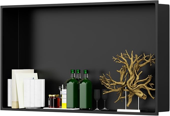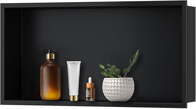 - STYLISH AND MODERN FINISH: This bathroom shower niche features a matte black finish, adding a modern touch to your bathroom decor. The clean, polished design complements a variety of bathroom styles, whether modern or traditional, and serves as a decorative element in the shower area while also being functional