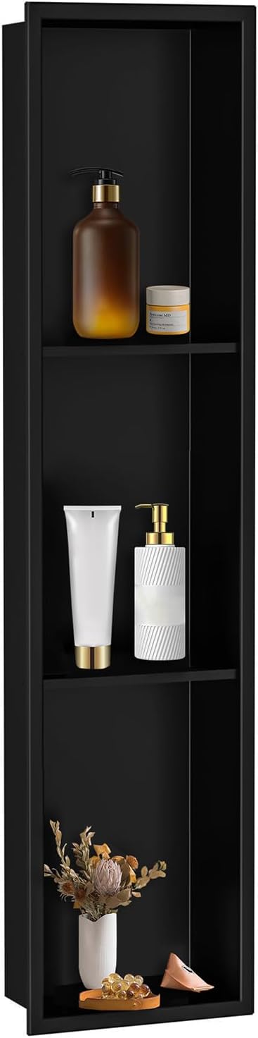 - STYLISH AND MODERN FINISH: This bathroom shower niche features a matte black finish, adding a modern touch to your bathroom decor. The clean, polished design complements a variety of bathroom styles, whether modern or traditional, and serves as a decorative element in the shower area while also being functional