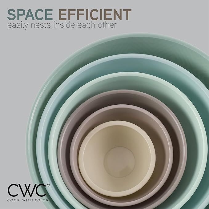 COOK WITH COLOR Mixing Bowls with Lids - 12 Piece Plastic Nesting Bowls Set includes 6 Prep Bowls and 6 Lids, Rhombus Design - Microwave Safe (Mint)