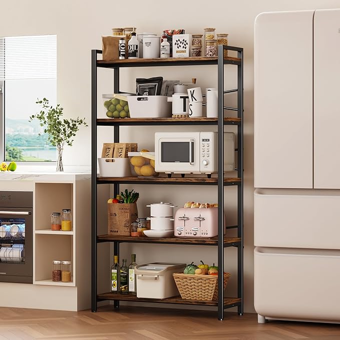 5 Tier Bookshelf 31.49" Width, Book Organizers and Storage, Wood and Metal Tall Bookcase, Rustic Book Shelf Organization and Storage for Home Living Room Bedroom Office Storage(Rustic Brown)
