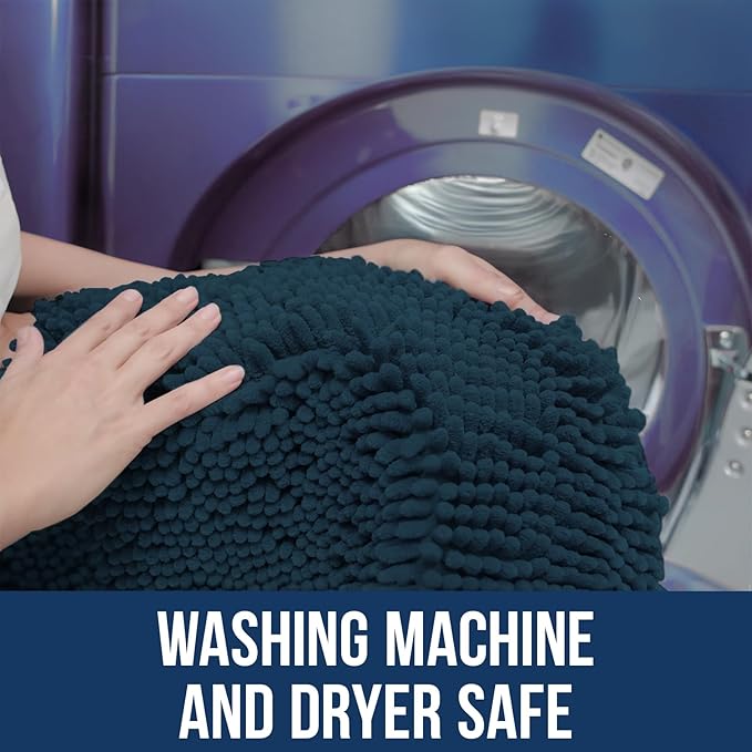 Muddy Mat Chenille Bathroom Rugs Quick Dry Microfiber Mats Non Slip Washable, Extra Thick, Soft and Highly Absorbent Bath Mats for Bathroom, Kitchen, and Shower Floor - Atlantic Blue Large 35"X24"