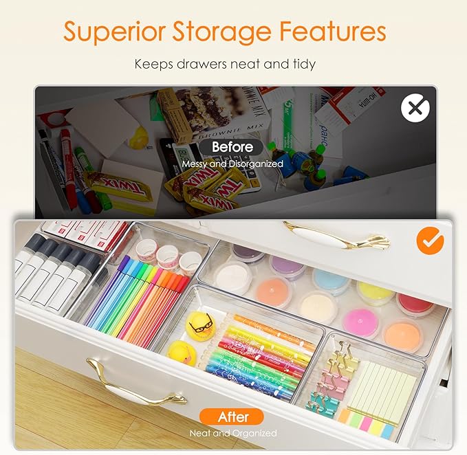 - Wide Range of Use Scenarios: Perfect for kitchen, bedrooms, bathroom and Office. Whether it's stationery, cosmetics, kitchen junk, snack or office supplies, you can easily find the right space for everything