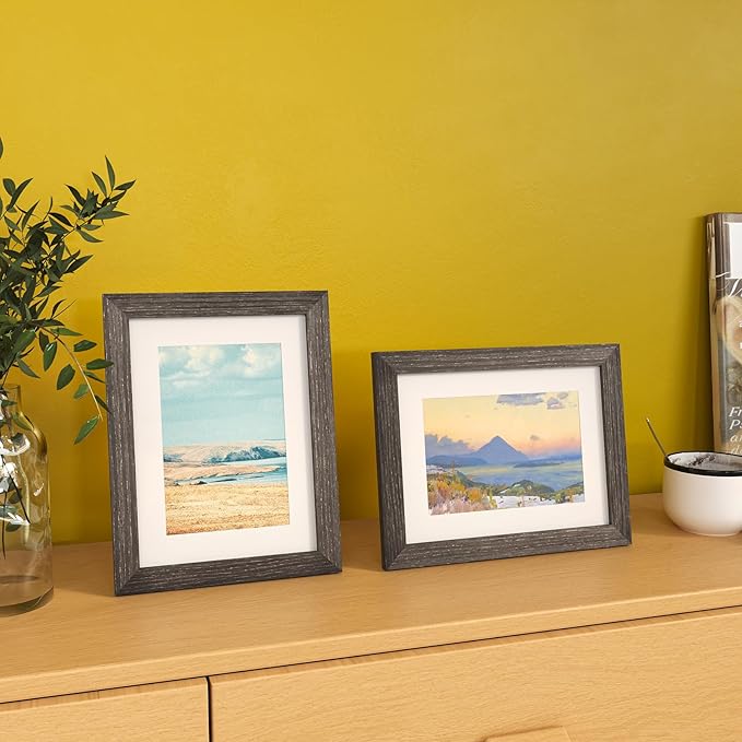 - ATTRATIVE DESIGN: The ash black 6x8 picture frame with mat smooth wood grain lines can almost complement any decorative styles. The simple outlook combined with exquisite details, which is suitable for highlighting your valuable memorable times.