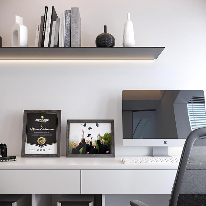 - ATTRATIVE DESIGN: These 8.5x11 document frames exhibit ash black wood color and curved Bevel. Their smooth wood grain lines can almost complement any decorative styles. These 8.5x11 ash black wood picture frames perfectly matched with certificate, pictures, photos, prints which is suitable for highlighting memorable times.