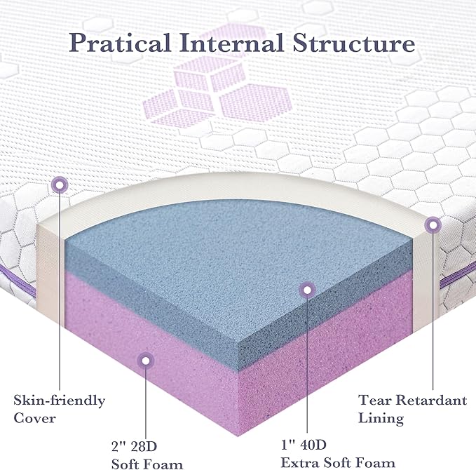 - UNIQUE STYLE DESIGN - SINWEEK original designers carefully choose elegant lavender color scheme and integrate gentle line elements to complete the pretty cover pattern. The inner mattress topper consists of a haze blue upper layer and a violet lower layer, while strictly controlling the fabric quality and finally complete the high-quality cover