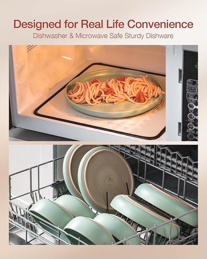 - WITHSTAND THE TEST OF TIME - Made from organic and natural clay, these dish sets are fired at 2340 °F for 13.5 hours, resulting in a sturdy, long-lasting, and chip-resistant product designed for long-term use