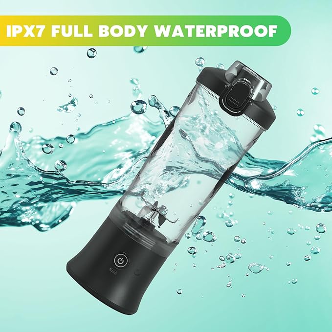 Portable Blender Personal Juicer for Shakes and Smoothies - 20 OZ Electric Protein Shaker Bottle with 6 Blades, Travel Lid, USB-C Rechargeable - Mini Small Blender Cup for Kitchen, Office, Gym