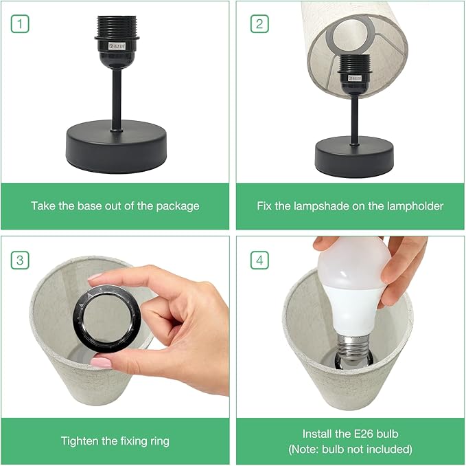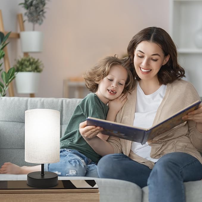 - 【Ideal Choice】The simple black base and fabric lampshade create a natural feel, the minimalist design fits in with any modern home decor. Table Lamp can serve as bedside lamp, office lamp, or living room side table lamp, ideal choice for your family or friends.