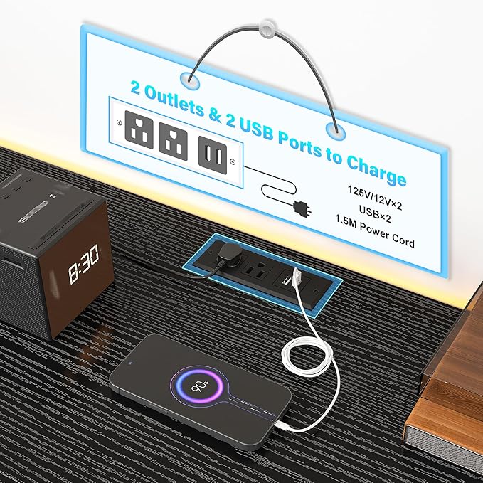 - 【Safety Power Outlet & LED Lights】Equipped with 2 power outlet & 2 ports, this TV stand offers convenient charging for your TV, gaming equipment, and other electrical devices. The led lights work flawlessly with remote, comes with various color options and flash options. The LED lights offers a nice ambiance. This TV stand is both functional and visually appealing, making it an excellent choice for anyone looking to upgrade their entertainment center