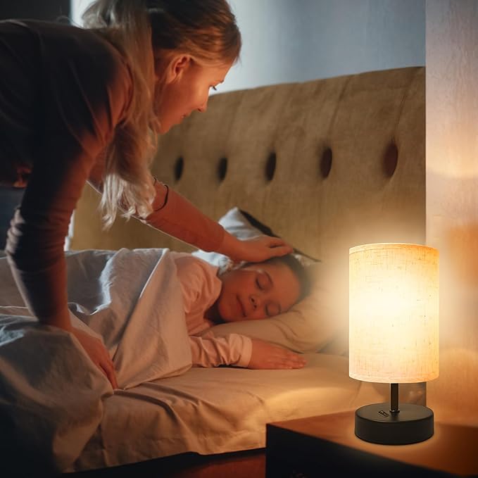 - 【Comfortable Glow】The small bedside lamps uses a flaxen fabric lampshade, which can soften the light to protect your eyesight, especially for teenager, and can also protect teenager's delicate skin. The lampshade is not only beautiful and sturdy, but also allows your family to DIY stickers on the lampshade to improve their hands-on ability.