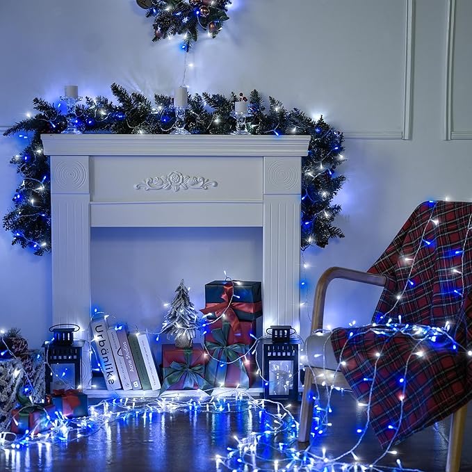 - 【500 LEDs Blue and White Christmas Lights】The 163 ft long light has 500 super quality LEDs that emit a steady and soft glow. At Christmas, these outdoor Christmas lights are long enough to be made into garden deers and can also be wrapped around a 7ft Christmas tree, thus creating a festive Christmas atmosphere. White is a classic color, and the white Christmas tree lights can easily add a pure and holy atmosphere, it is also a wonderful choice for wedding or party decoration.