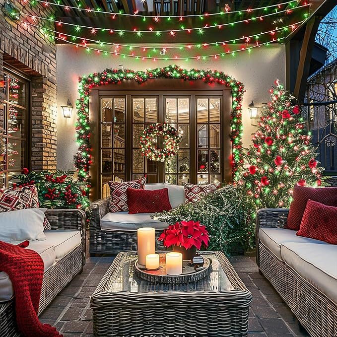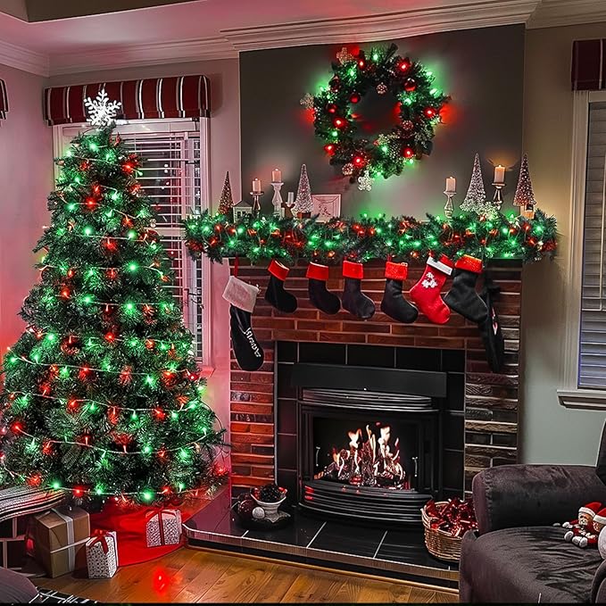 - 【Package Include】You'll receive 1x 500 LED red and green Christmas String Lights with a reel, 1x remote control, 1x UL Plug.