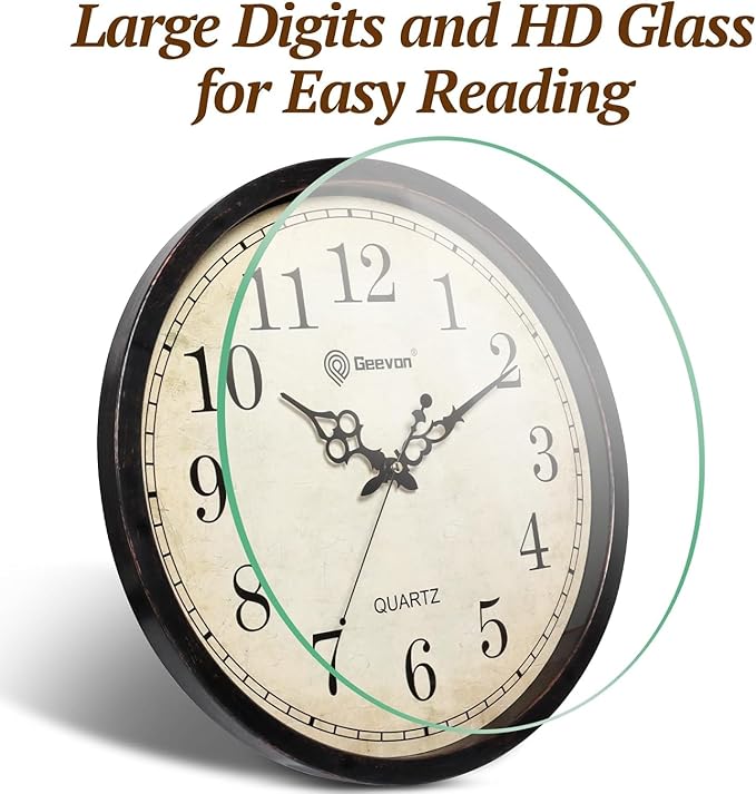 Geevon Vintage Wall Clock, Silent 16" Non Ticking Retro Round Clock Quartz Decorative Battery Operated Wall Clock for Kitchen,Office,Classroom,Bedroom,Living Room Decor