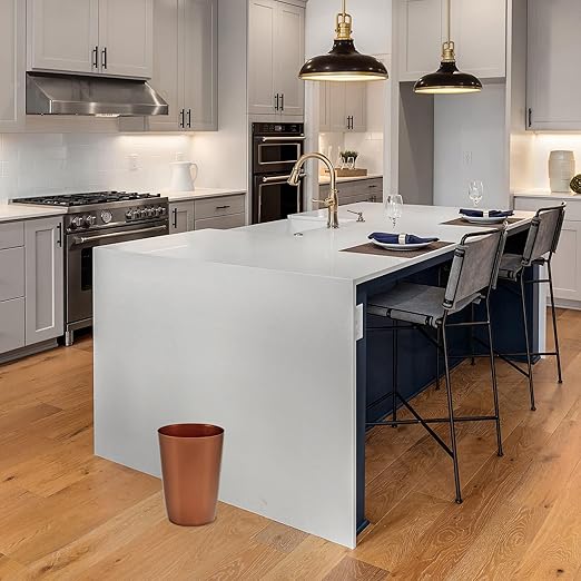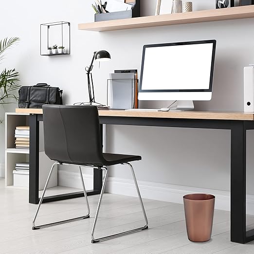 - COMPACT TRASH CAN: The design makes it ideal for small spaces. Perfect for next to toilet, shower, under cabinets, sinks, desks, and other places in need of a small garbage can. The sleek design makes it a perfect office trash can as well