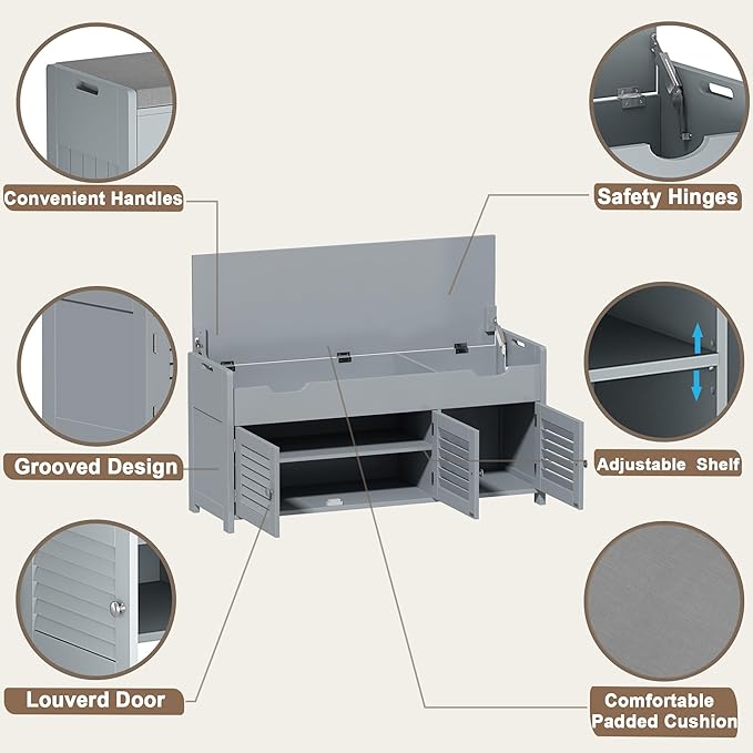 ChooChoo 41.3" Shoe Storage Bench with Lift Top Storage, Entryway Bench with Cushioned Seat, Adjustable Shelf, Shoe Cabinet with Hidden Space, for Entryway, Bedroom, Living Room, Grey