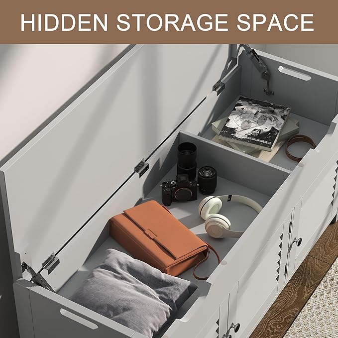 - 【Large Lift Table & 2 Hovering Support Rods】When you lift the top of the bench, there's ample hidden storage space for keys, wallets, umbrellas, and more. Our shoe cabinet also has 2 additional sturdy support bars for hovering, ensuring the lid won't suddenly slam shut