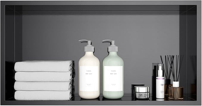 - 【Multi-Purpose Storage】TSIBOMU black stainless 24" shower niche not just for bathroom, also can be used for cupboards, bookshelves, kitchen, etc. It does not take up the building area, more convenient to use. The wall niche substitute for clunky bathroom shelves, as well as, other shelves and fixtures around your home