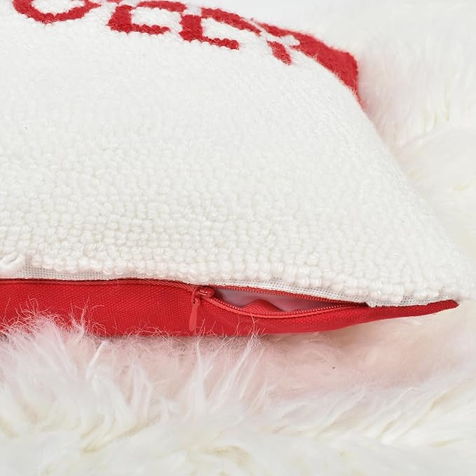 - 【High-Quality Christmas Decor】The Christamas Pillow Covers is made of Luxury Material, strong and durable, soft and comfortable,give you a great support to lean or lay on. The red white pillow covers is very skin-friendly, can give you a special warm feeling in winter. The embroidered Holly Jolly words on the front side makes the throw pillow covers very interesting and joyful, help you welcome the Christmas .