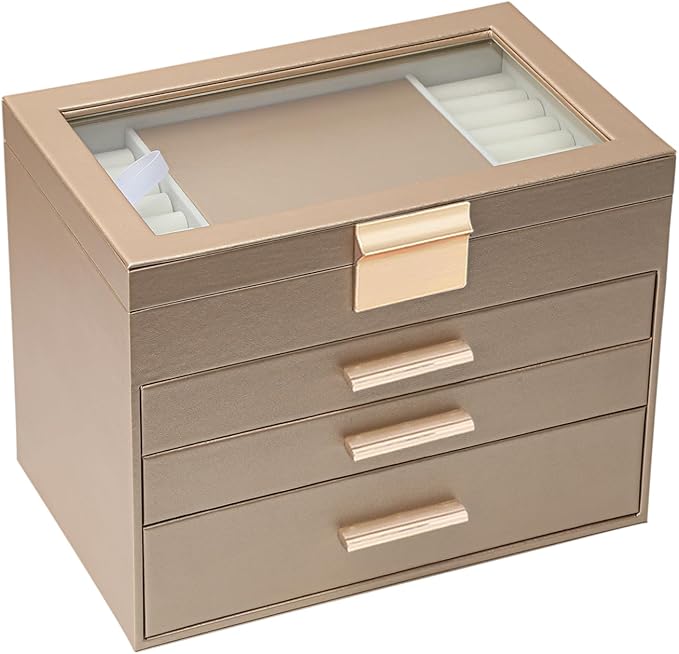 BOOVO Jewelry Boxes for Women, White and Black 4 Layer Large Jewelry Box for Necklace, Bracelet, Earrings, Rings Storage, Jewelry holder Organizer for Girls Gift (Gold, 4 layer)