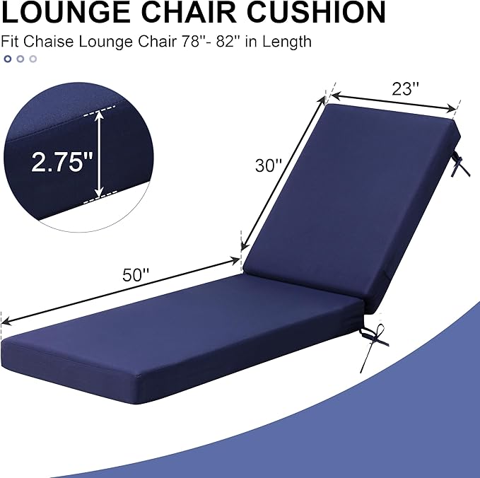 Crestlive Products Chaise Lounge Cushions Outdoor Set of 2, 80x23x3 Inch, Waterproof & 3-Year Fade Resistant Lounge Chair Cushions for Outdoor Furniture, Patio Cushions for Pool, Lawn, Navy
