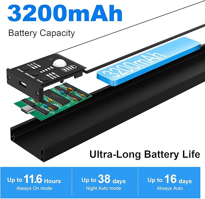 - 【USB_C Charging,Super-Long Battery】 YELKO motion cabinet lights has an impressive 3200mAh Battery that has been going strong for several days, which means less recharging.that all of the controls have indicator lights showing what your settings are. There's even a lighted battery indicator scale, which tells you how much of a charge you have left.The display blinks while charging.