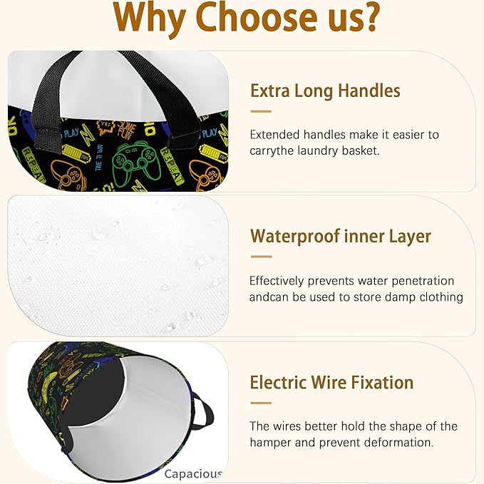 Game Controller Video Game Laundry Basket,Waterproof Laundry Hamper,Collapsible Organizer Basket for Storage Bin Toy Bins,Dirty Clothes Laundry Basket for Living Room/Bathroom/Bedroom