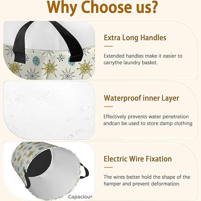 Mid Century Modern Pattern Laundry Basket,Waterproof Foldable Laundry Hamper,Dirty Clothes Laundry Basket, Linen Bin Storage Organizer for Toy Collection 16" x 20"