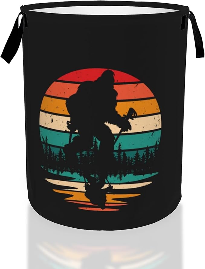 Big Foot Hiking Sunset Laundry Basket,Waterproof Laundry Hamper,Collapsible Organizer Basket for Storage Bin Toy Bins, Dirty Clothes Laundry Basket for Living Room/Bathroom/Bedroom