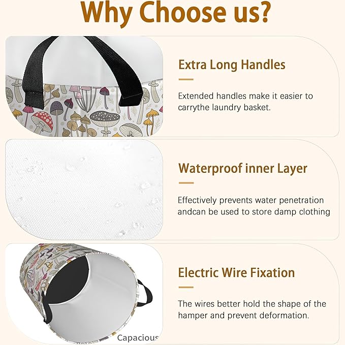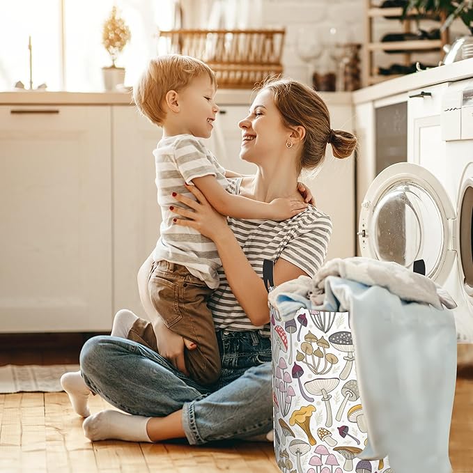 Mushroom Retro Laundry Basket,Waterproof Mushrooms Laundry Hamper,Collapsible Organizer Basket for Storage Bin Toy Bins, Dirty Clothes Laundry Basket for Living Room/Bathroom/Bedroom