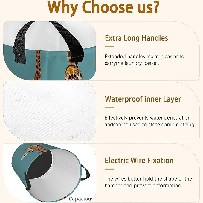 Laundry Hamper, Funny Giraffe Laundry Basket,Waterproof Foldable Storage Bin for Bedroom,Clothes Organizer Basket,Toys Box 16x20 Inch
