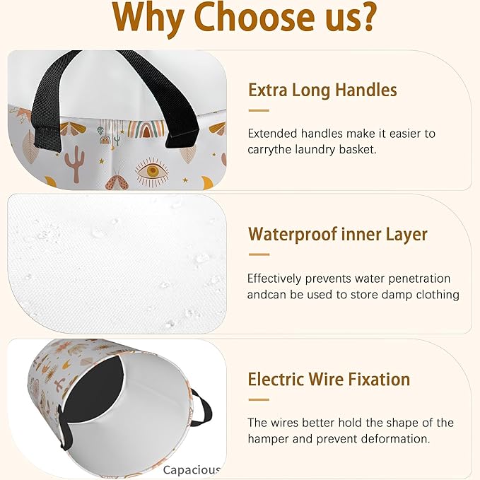 Laundry Hamper, Boho Moon Star Sun Mystical Laundry Basket,Waterproof Foldable Storage Bin for Bedroom,Clothes Organizer Basket,Toys Box 16x20 Inch