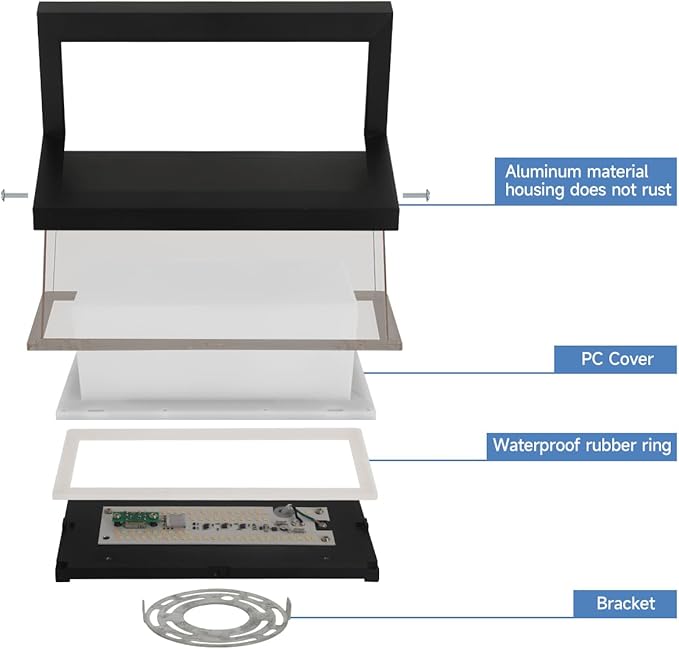 - 【IP65 PROTECTION LEVEL】: Outdoor wall lights have an IP65 waterproof level. The lamp body is made of high-quality aluminum alloy, with a sturdy structure and anti-corrosion and rust prevention measures; Energy saving and environmentally friendly LED light sources and double-layer high transparency acrylic lampshades, with bright and even light, low power consumption and no flickering, non replaceable light sources have a longer lifespan and are safer