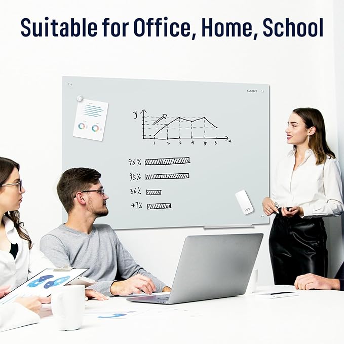 Loukin Glass Whiteboard for Wall, Magnetic Dry Erase Glass Board, Framless Surface White Board for Office, School, Dry Erase Whiteboard Set Includes Cleaner & Eraser & Marker (24" x 36")